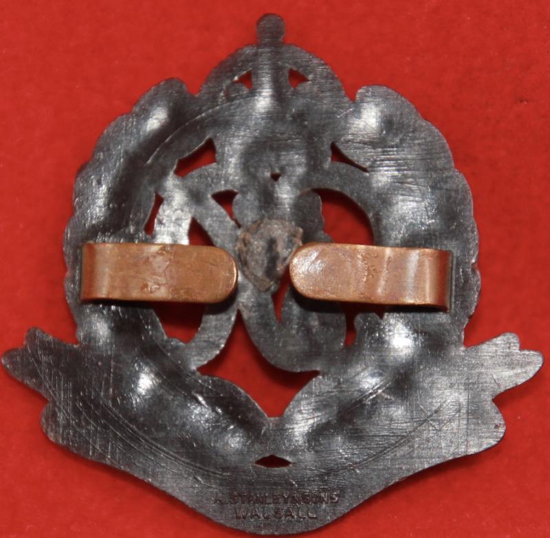 A WW2 economy issue, plastic, cap badge for The Corps of Military Police with two blade fastenings (east and west). The reverse is marked for manufacturer A Stanley & Sons. KK2722.