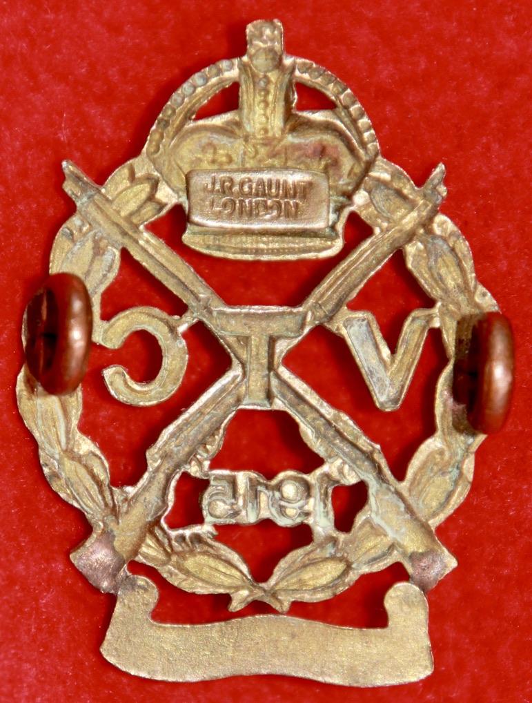 A brass cap badge for The Suffolk Volunteer Training Corps with two lug fastenings (east and west). The reverse bears a plaque for manufacturer J.R. Gaunt London. KK1678.