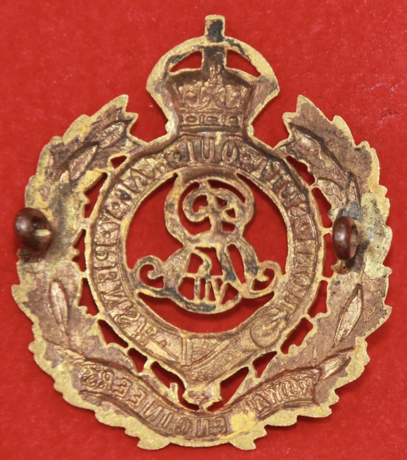 A scarce and attractive, Edward 7th pattern, gilt cap badge for an officer of The Royal Engineers with two lug fastenings (east and west). KK852.