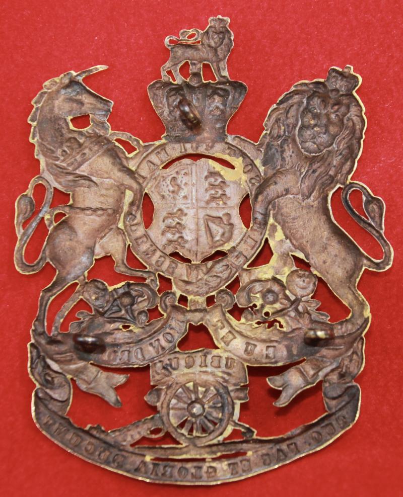 A gilt helmet plate for an officer of The Royal Artillery with three lug fastenings (north, east and west). As KK806.