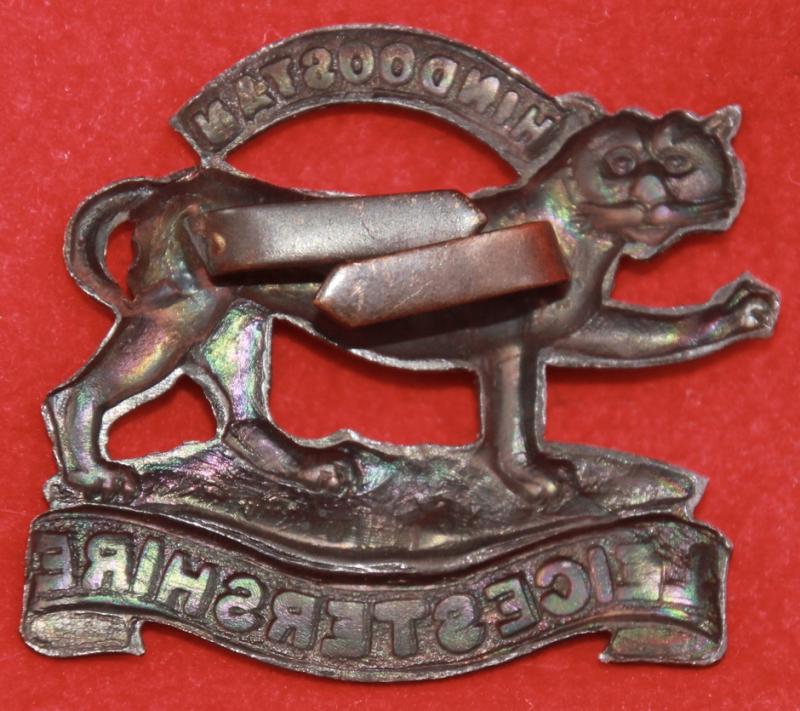 An officer's service dress, bronzed, cap badge for The Leicestershire Regiment with two blade fastenings (east and west). KK612.
