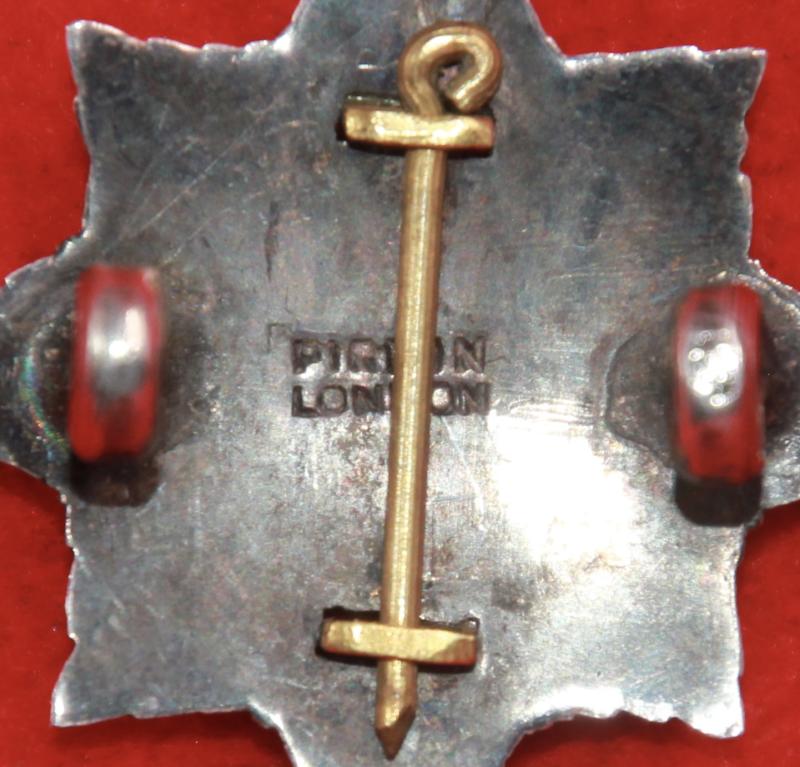 A silver, gilt and enamel collar badge for an officer of The 4th/7th Dragoon Guards with two lug fastenings (east and west). The reverse is marked Firmin London. Churchill & Westlake 40.