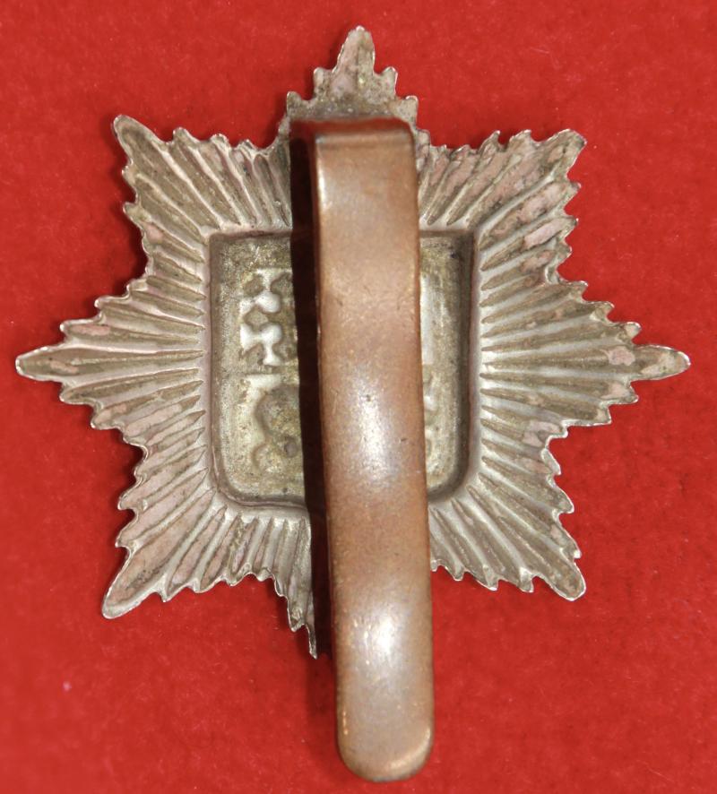 A white metal cap badge for the 13th battalion of The London Regiment (Kensington Rifles) with a slider fastening. KK1839.