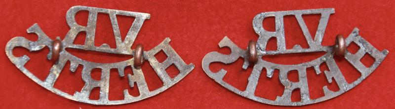A pair of brass/bronzed shoulder titles for The Hertfordshire Volunteer Regiment, each with two lug fastenings (east and west).