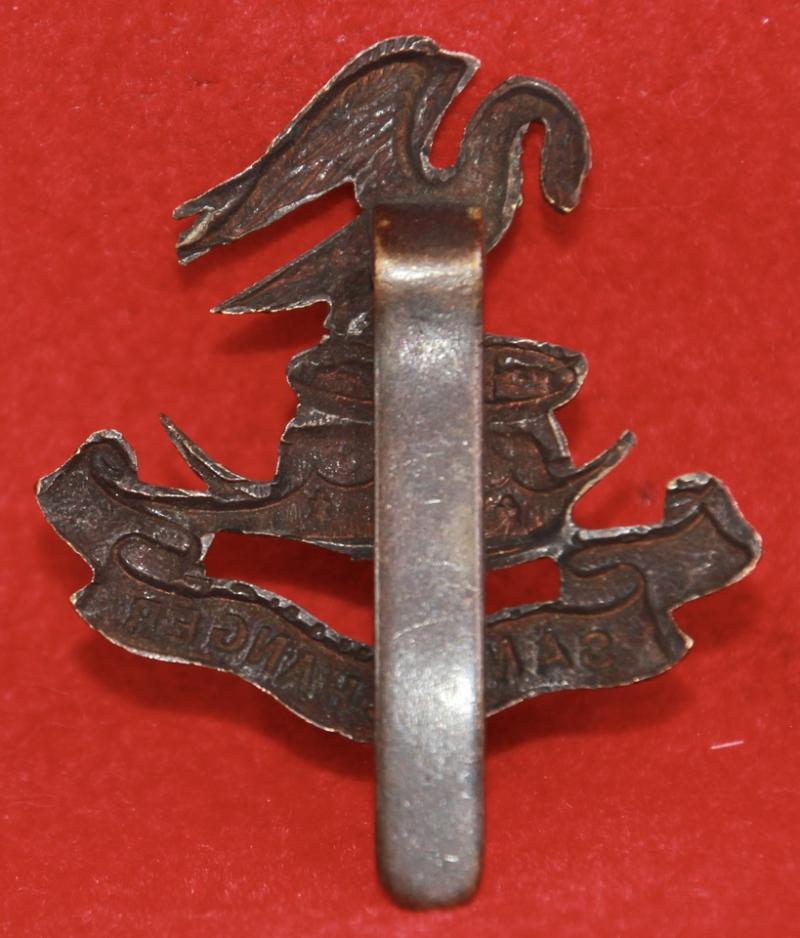 A scarce, brass/bronzed, cap badge for the 17th-20th (1st-4th City) battalions of The King's Regiment (Liverpool) with a slider fastening. KK1146. These short-lived units were part of Kitchener's Army.
