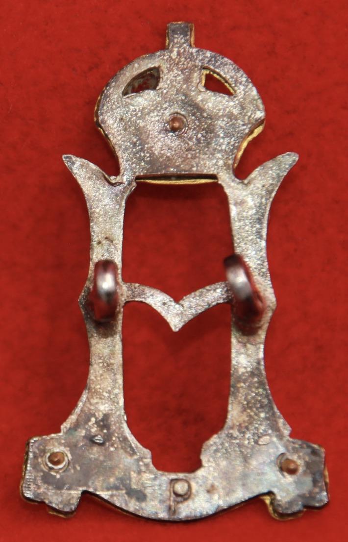 A scarce, silver-plated and gilt, cap badge for an officer of The 23rd Hussars with two lug fastenings (east and west). The reverse is stamped 'P' to indicate silver plate. KK1913.