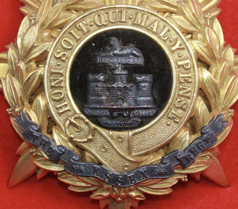 A rare and attractive, silver and gilt, helmet plate for an officer of The Essex Regiment with three lug fastenings (north, east and west). As KK258.