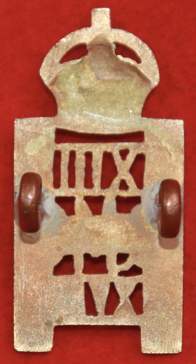 A scarce, bi-metal, collar badge for The 13th/18th (Queen Mary's Own) Hussars with two lug fastenings (east and west). As KK1904.