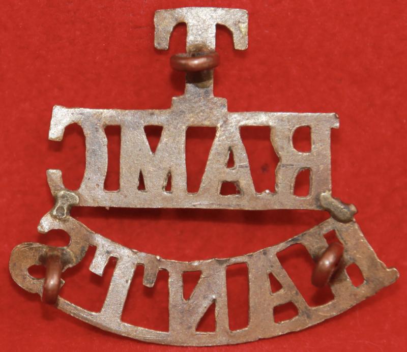 A brass shoulder title for the 3rd Wessex (territorial) Divisional Field Ambulance of The Royal Army Medical Corps with three lug fastenings (north, east and west). Westlake 435.