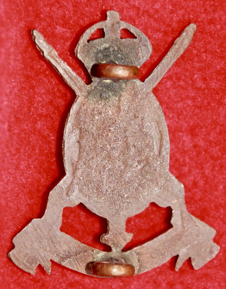 An officer's service dress, bronzed, collar badge for The 6th Dragoon Guards (Carabiniers) with two lug fastenings (north and south). Churchill & Westlake 10.