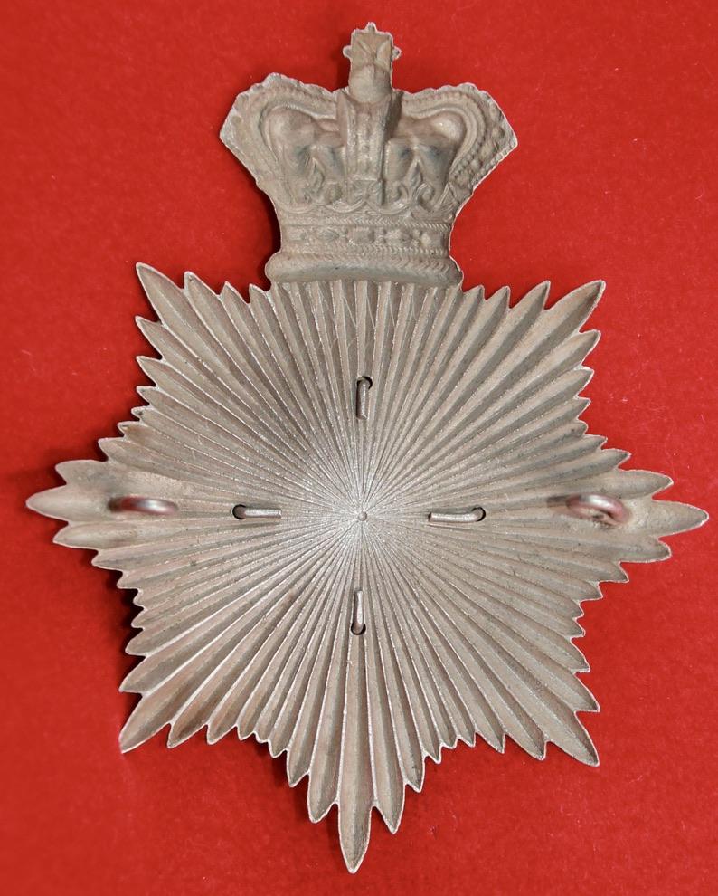 A rare, silvered, shako plate for an officer of The 1st Lancashire Volunteer Rifles with two horizontal lug fastenings (east and west).