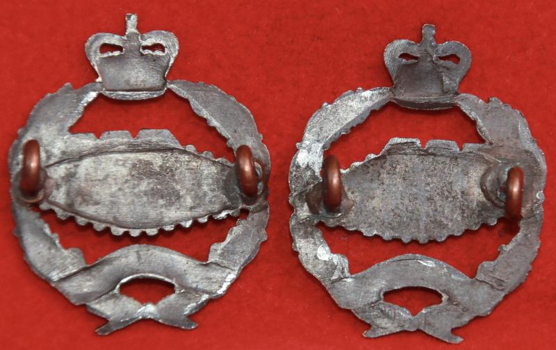 A pair of post-1952, officer's service dress, bronzed collar badges for The Royal Tank Regiment, each with two lug fastenings (east and west). Churchill & Westlake 49.