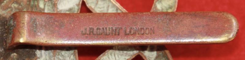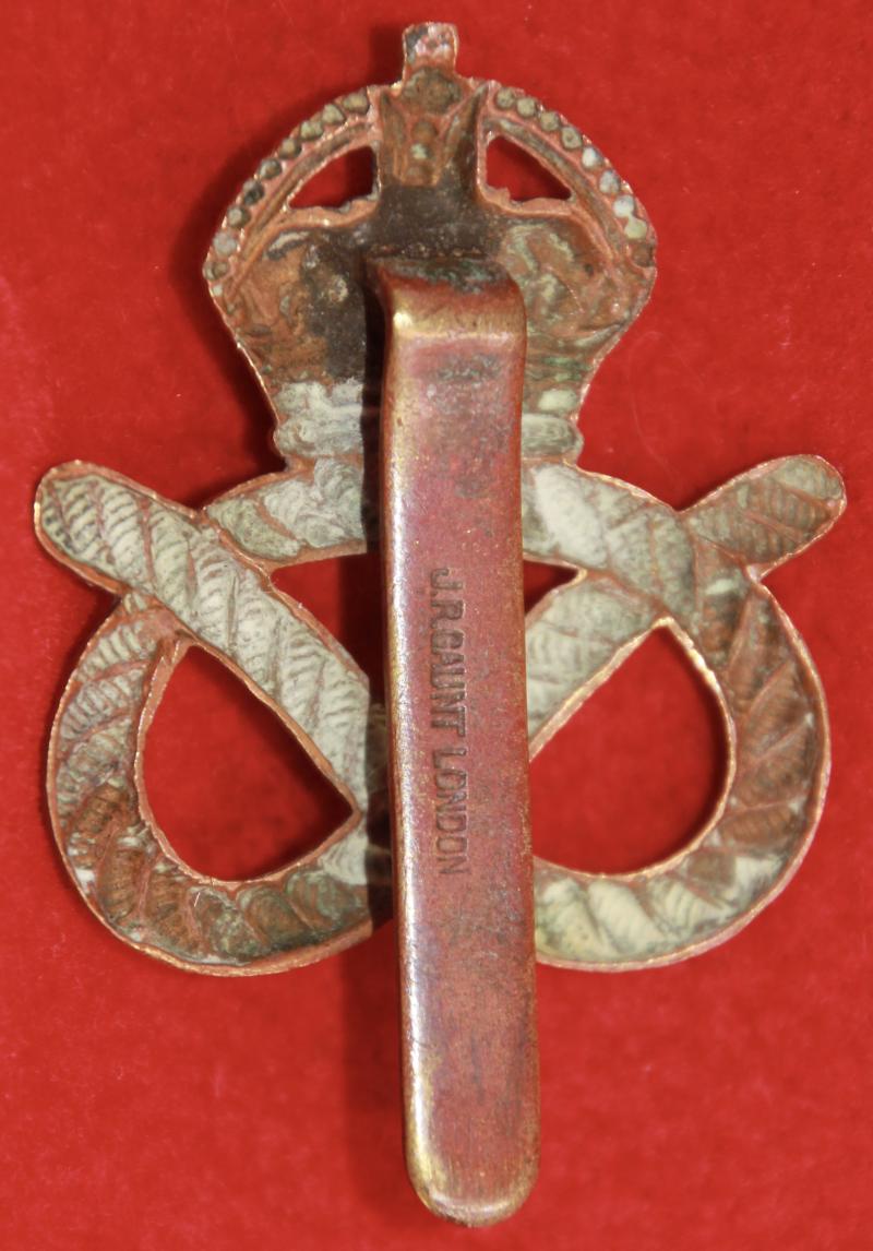 A brass cap badge for The Staffordshire Yeomanry with a slider fastening (marked J.R. Gaunt London). KK1413.