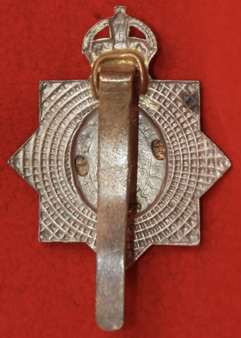 A bi-metal cap badge for The 1st (King's) Dragoon Guards with a slider fastening, 'sweathole' construction and a strengthener behind the crown. KK735.