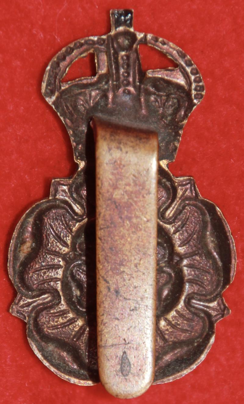 A blackened brass cap badge for The Yorkshire Dragoons with a slider fastening. KK2296.