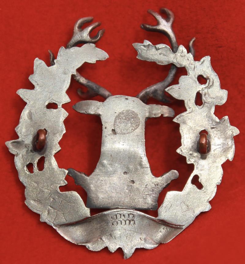 A nice, silvered, glengarry badge for an officer of The Gordon Highlanders with two lug fastenings (east and west). The reverse is (faintly) marked for manufacturer Ludlow London. Bloomer 2, 209.