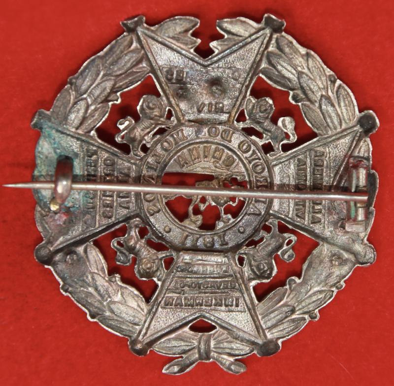 A white metal puggaree badge for The Border Regiment with a pin fastening. As KK326 (without the title scroll).