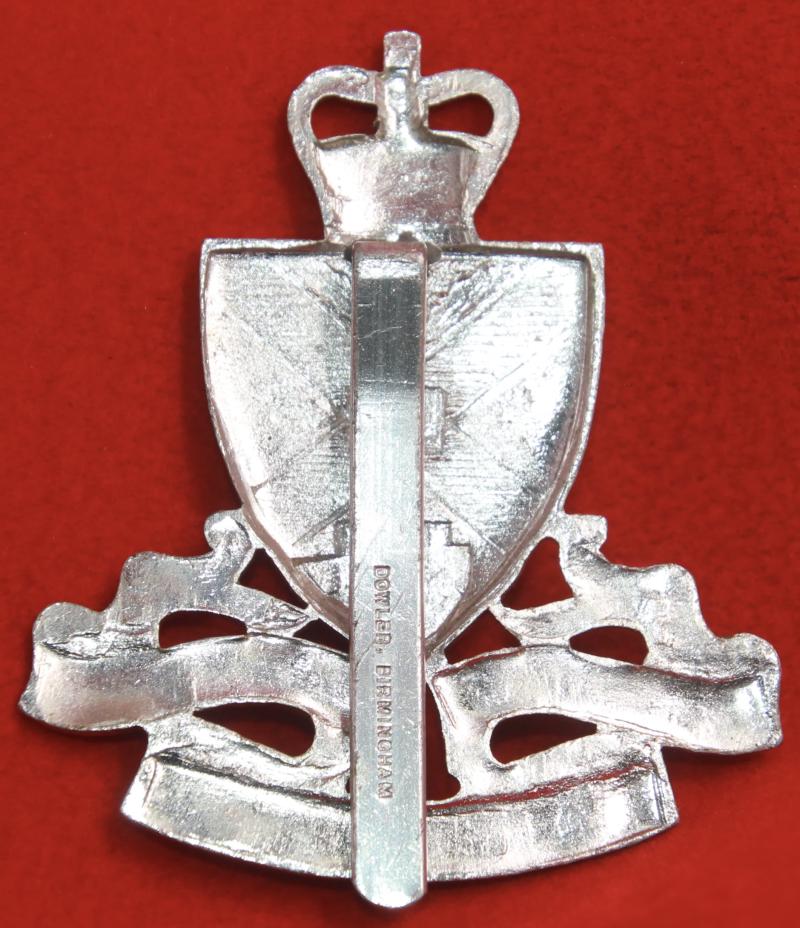 An anodised aluminium glengarry badge for The University of Edinburgh Officer Training Corps with a slider fastening (marked Dowler Birmingham). KK2454.