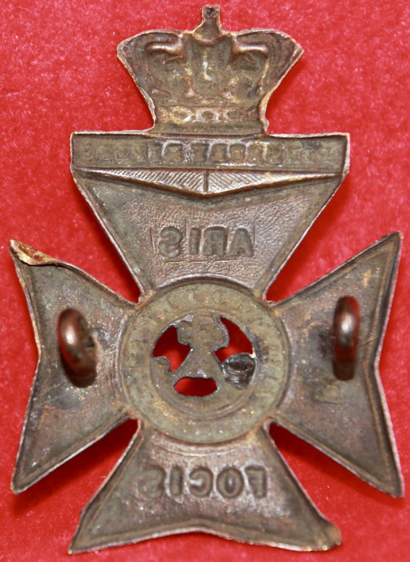 A blackened brass cap badge of The 21st Middlesex Rifle Volunteers (Finsbury Rifles) with two lug fastenings (east and west).