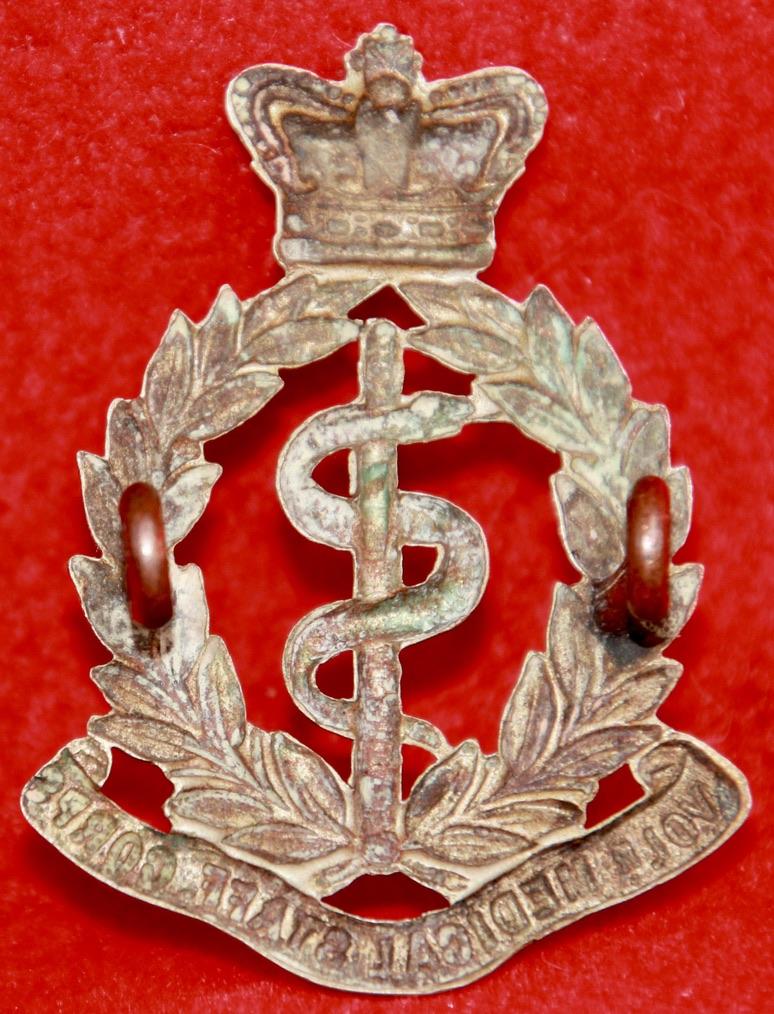 A scarce, white metal, cap badge for The Volunteer Medical Staff Corps with two lug fastenings (east and west). KK1010.