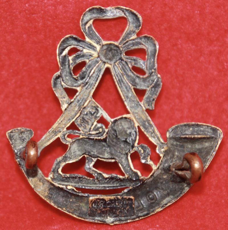 A scarce, brass (previously blackened), cap badge for The London Volunteer Rifles (part of the WW1 Volunteer Training Corps) with two lug fastenings (east and west). The reverse bears a plaque for manufacturer J.R. Gaunt London. KK1652.