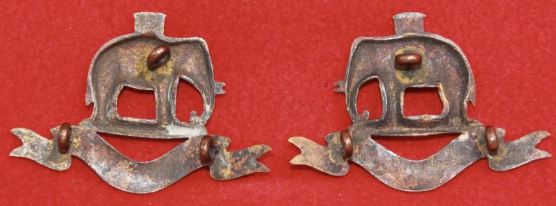 A nice pair of officer's service dress, bronzed, collar badges for The Duke of Wellington's (West Riding) Regiment, each with three lug fastenings (north, east and west). Churchill 924/925.