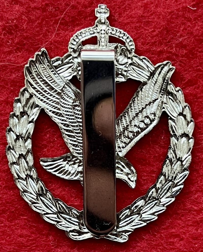 A chromed cap/beret badge for The Army Air Corps with a slider fastening. As KK2056. Note: This is the new 'Tudor crown' version, introduced following the accession of King Charles III in 2022.