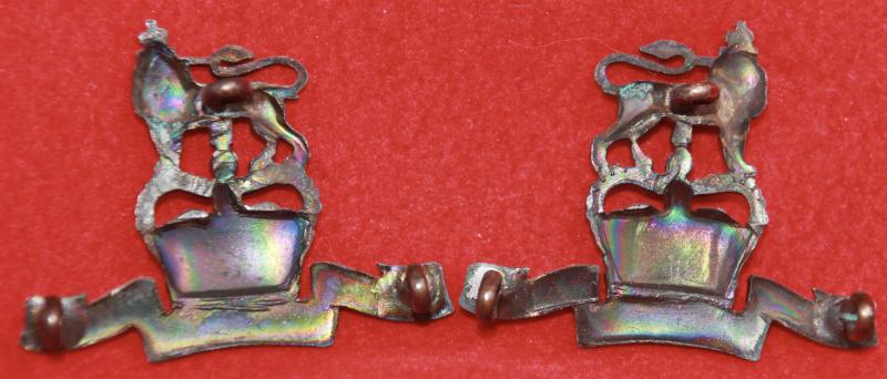 A pair of officer's service dress, bronzed, collar badges for The Royal West Kent Regiment, each with three lug fastenings (north, east and west). Churchill 1376.
