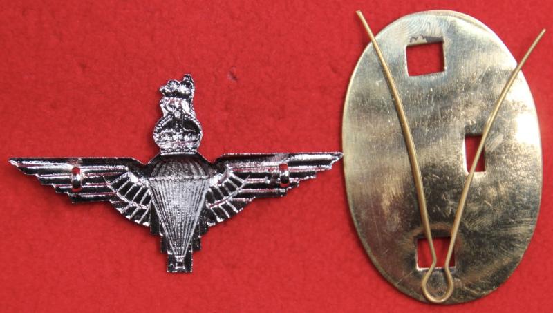 A white metal/chromed beret badge for The Parachute Regiment with two lug fastenings (east and west) and its backplate intact. As KK2059.