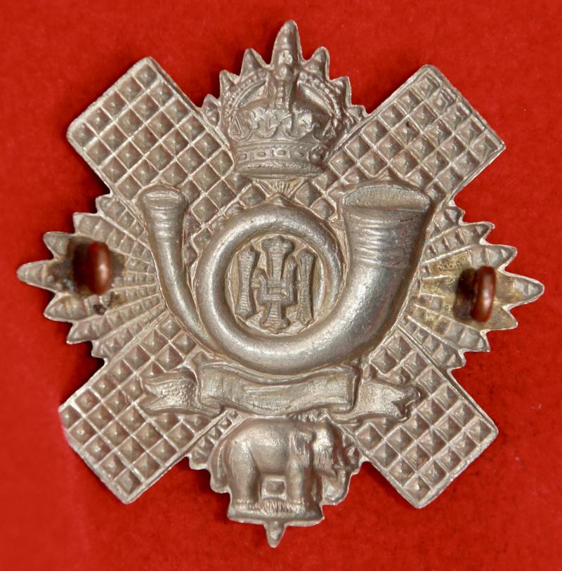 A white metal glengarry badge for the 5th, 7th & 8th (territorial) battalions of The Highland Light Infantry (City of Glasgow Regiment) with two lug fastenings (east and west). As KK1749.