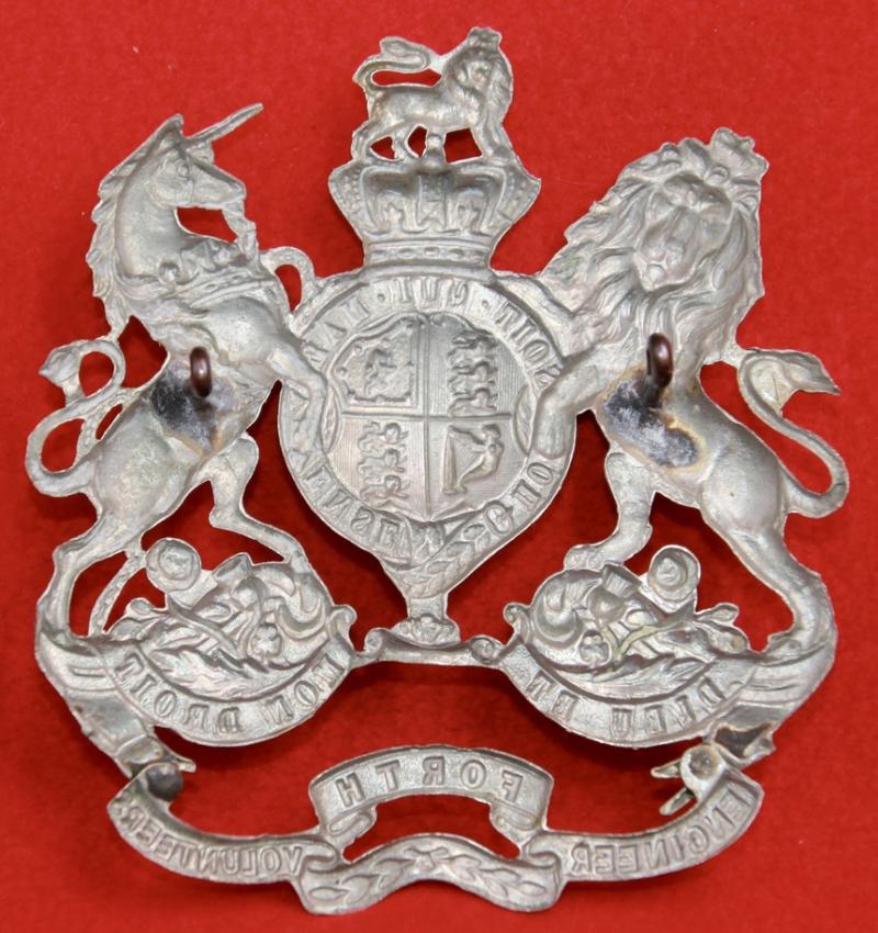 A rare, white metal, helmet plate for The Forth Engineer Volunteers with two lug fastenings (east and west).