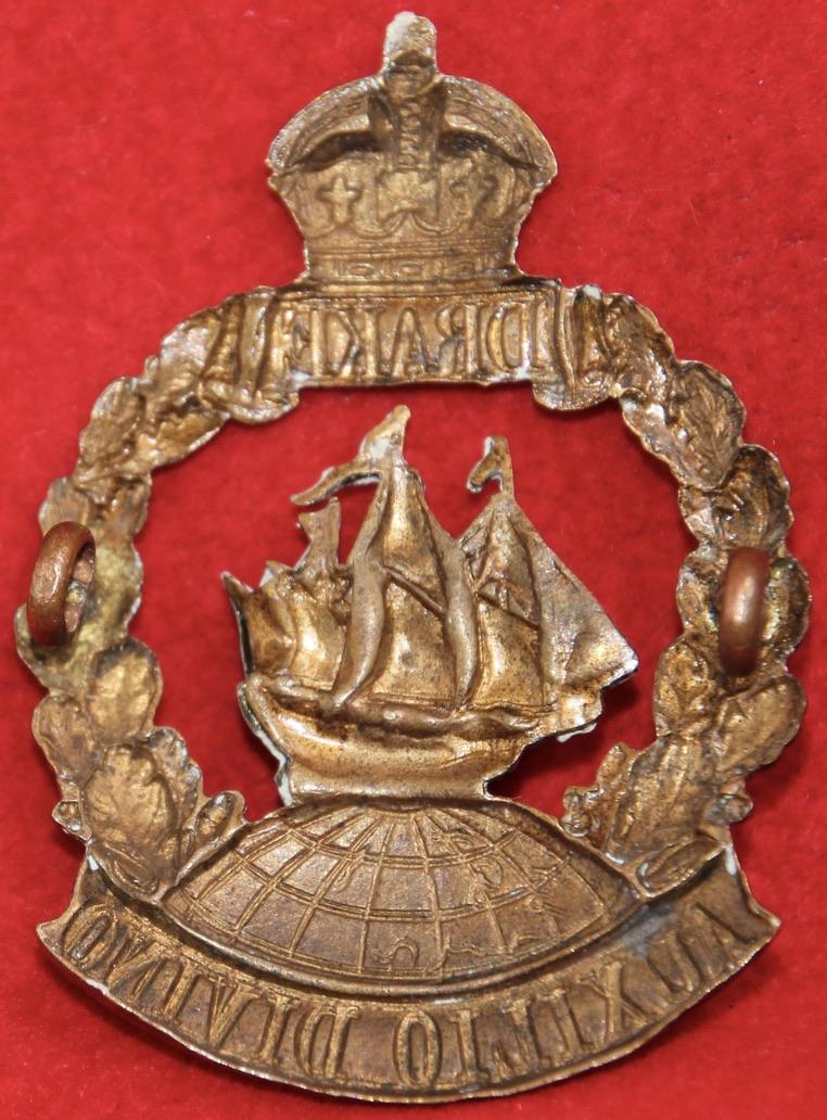 A scarce, bi-metal, cap badge for The Royal Naval Division, Drake Battalion, with two lug fastenings (east and west). KK1161.