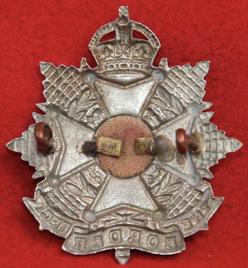 A scarce, white metal, cap badge for the 3rd (militia) battalion of The Border Regiment with two lug fastenings (east and west) and the usual two 'blade' fastenings holding a red felt centre in place. KK1221.