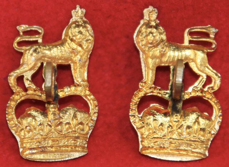 A pair of brass collar badges for The Royal West Kent Regiment, each with a single lug fastening. Churchill 1366.