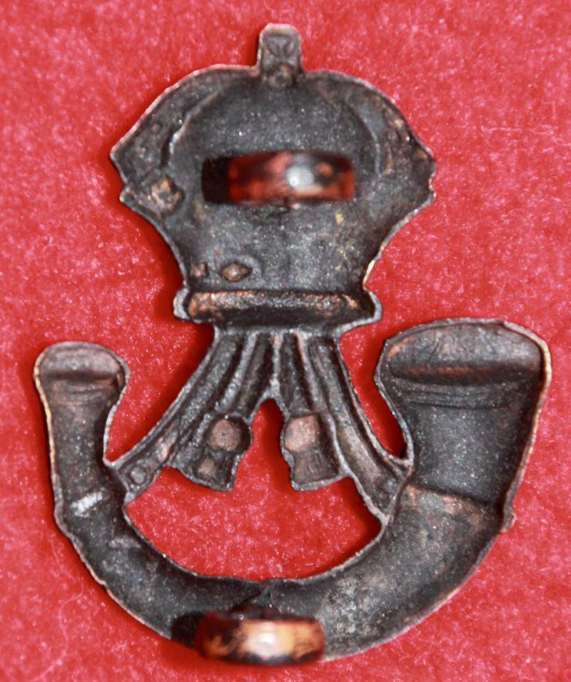 A scarce, Guelphic crown, blackened brass boss badge as worn by The Rifle Brigade (and perhaps other units) with two lug fastenings (north and south).