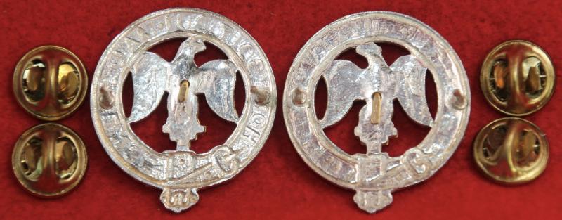 A pair of silver-plated and gilt collar badges for the 3rd battalion of The East Anglian Regiment (and later Royal Anglian Regiment), each with two pin and clutch fastenings (east and west). Churchill & Westlake 285.