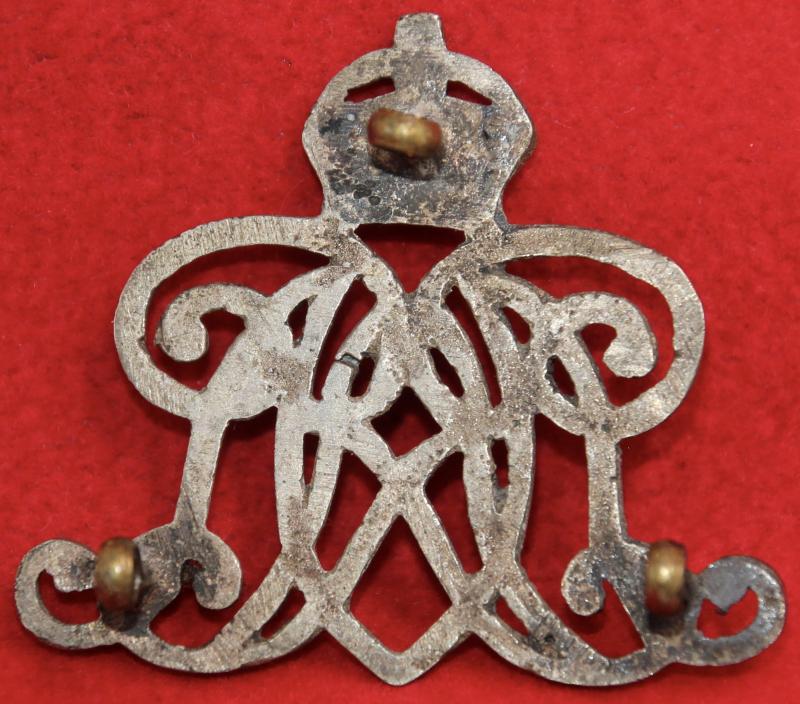 A cast, white metal, arm badge for a non-commissioned officer of The 9th Lancers with three lug fastenings (north, east and west). Linaker & Dine 25.1B.