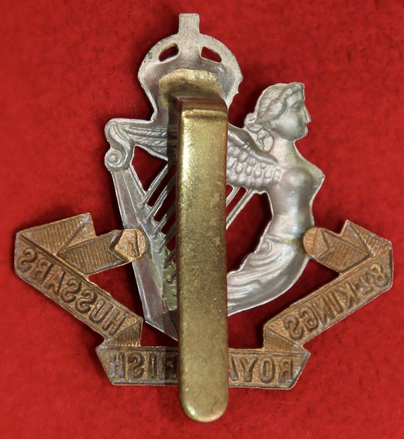 A bi-metal cap badge for The 8th (King's Royal Irish) Hussars with a slider fastening. KK762.