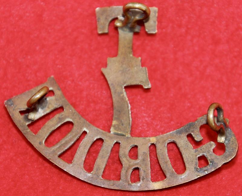 A brass shoulder title for the 7th (territorial) battalion of The Gordon Highlanders with three lug fastenings (north, east and west). Westlake 1384.