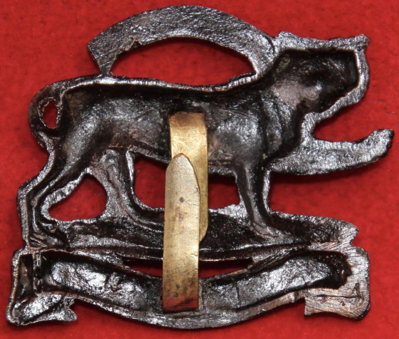 An officer's service dress, bronzed, cap badge for The Leicestershire Regiment with two blade fastenings (east and west). KK612.