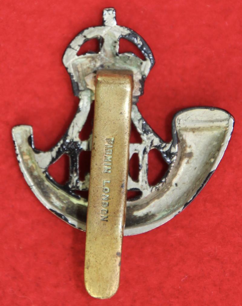 A blackened (white metal) beret badge for the 5th, 7th, 8th and 9th (territorial) battalions of The Durham Light Infantry with a slider fastening (marked Firmin London). As KK2015/2397.