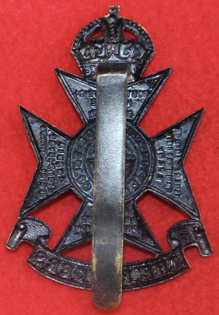 A third pattern, blackened brass, cap badge for the 12th battalion of The London Regiment (The Rangers) with a slider fastening. KK2417.