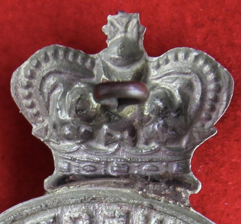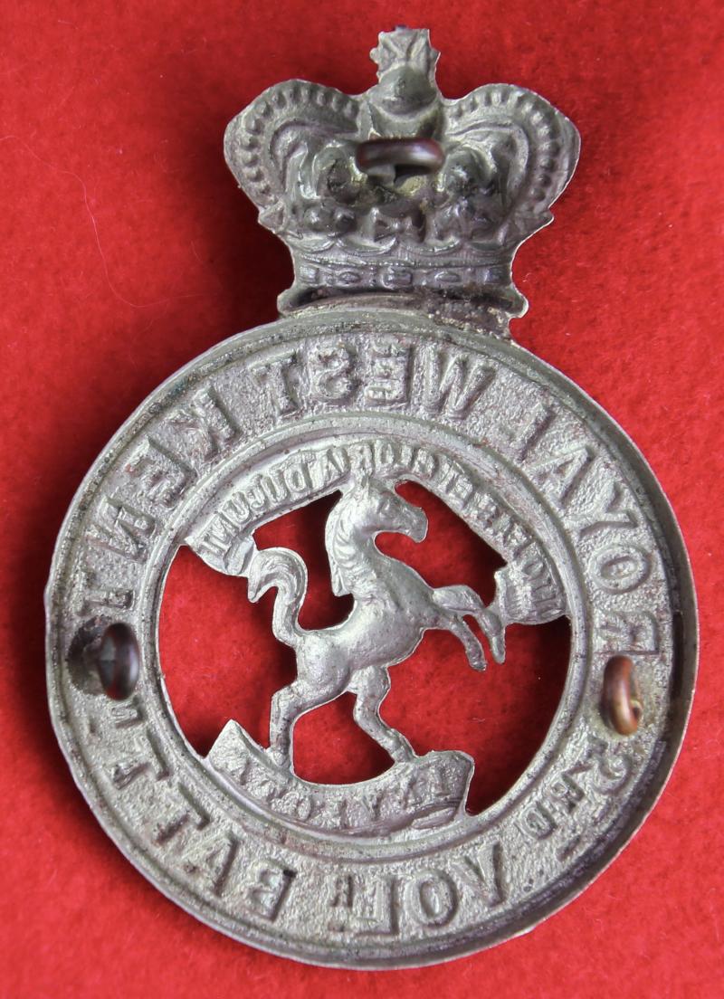 A scarce, white metal, glengarry badge for the 3rd volunteer battalion of The Royal West Kent Regiment with three lug fastenings (north, east and west). Headquarters at Woolwich.