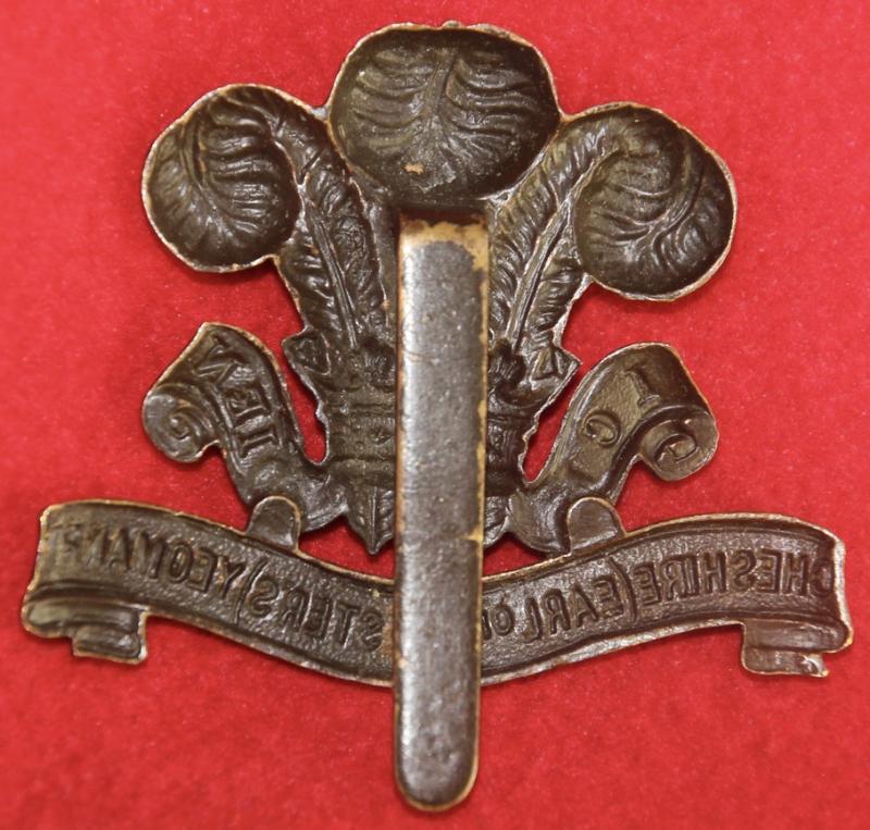 A nice, bronzed, cap badge for The Cheshire (Earl of Chester's) Yeomanry with a slider fastening. KK2300.