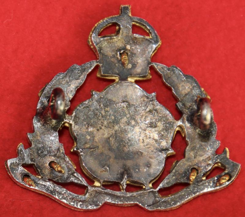 A scarce, silver-plated and gilt, beret badge for an officer of The Derbyshire Yeomanry with two long lug fastenings (east and west). Approximately 45mm wide x 40mm high. As KK2343.