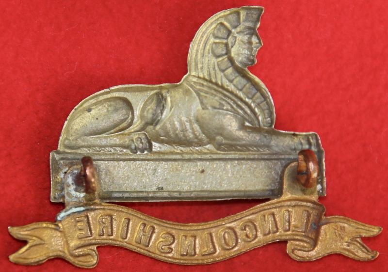 A bi-metal cap badge for the 4th/5th (territorial) battalions of The Lincolnshire Regiment with two lug fastenings (east and west). KK1708.
