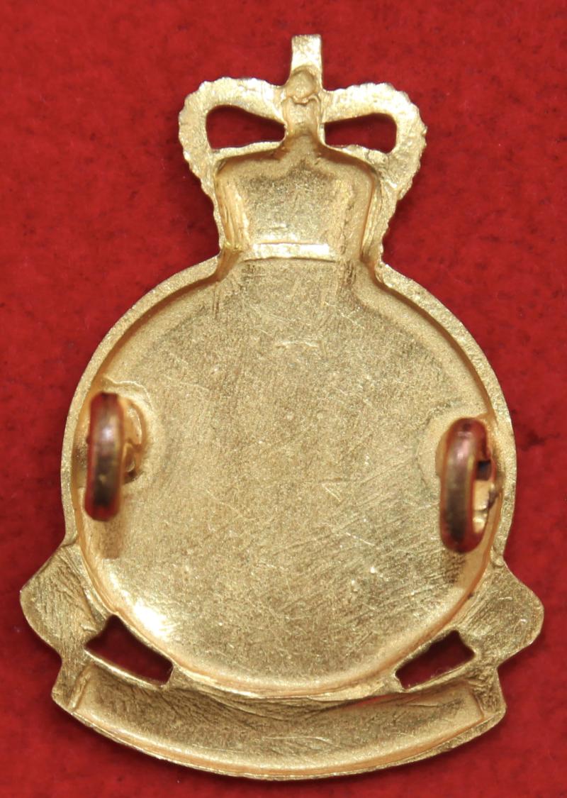 A silver-plated and gilt cap badge for an officer of The Army Catering Corps with two lug fastenings (east and west). KK2159.