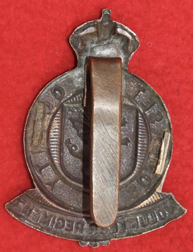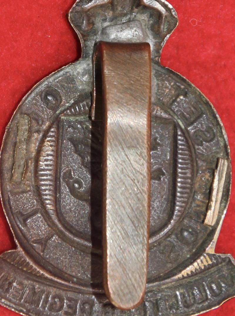 A scarce, bronzed, cap badge for The Somerset County Volunteer Regiment with a replacement slider fastening. KK1677.