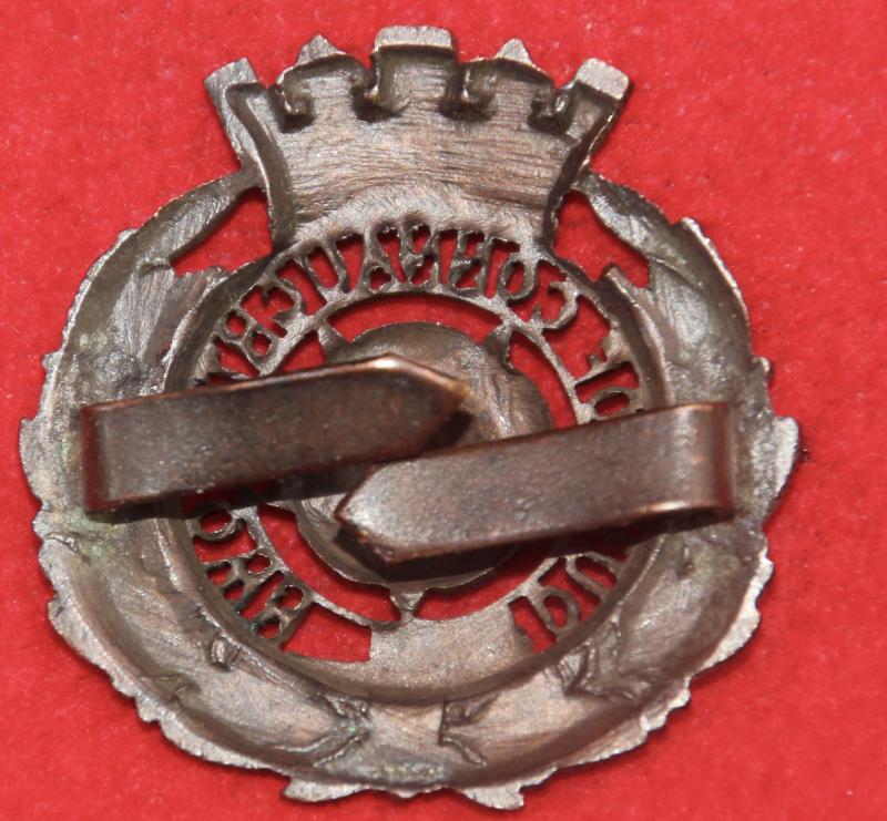 A scarce, officer's service dress, bronzed cap badge for the 6th battalion of The Royal Hampshire Regiment (Duke of Connaught's Own) with two lug fastenings (east and west). As KK1729.